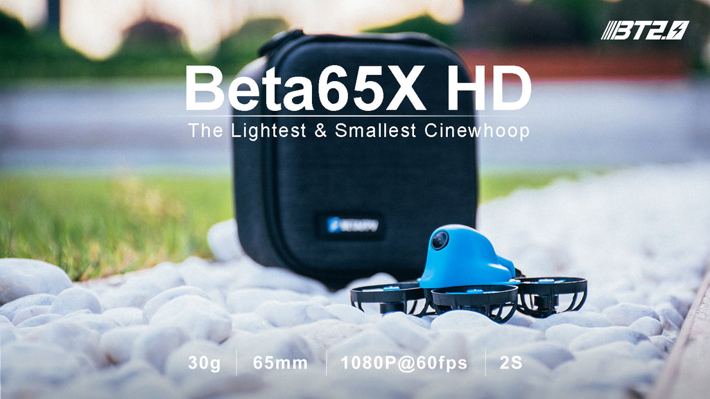 - Beta65X HD is the lightest and smallest brushless cinewhoop at the world! Small size in 65mm and light weight of 30g, gives pilots a good balance of weight and nice punch on 2S battery.