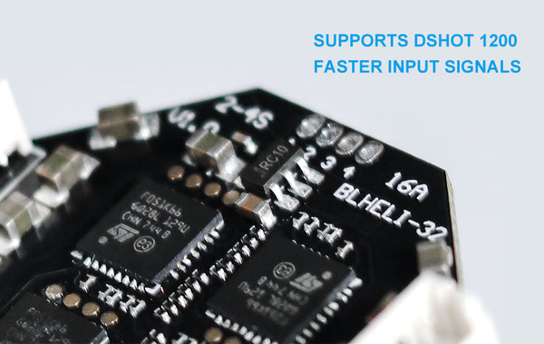 BLHeli_32 is the 3rd generation ESC firmware after BLHeli and BLHeli_S, which is written for ESC‘s that utilize 32-bit MCU. With the increase in processing power, faster input signals with lower latency and higher update rate would be possible in BLHeli_32, such as Dshot1200!