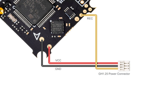 For example, if you use F4 FC V2.0 in the drone, like the 95X whoop drone, the connection diagram is shown below. The yellow cable (FC B12 pin pad) is just for the remote record.