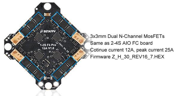 - Most of the 1S flight controllers on the market come with 5A ESC by now, but this FC especially integrates 1S 12A ESC, it can provide more sufficient power for 3″ toothpick drones.