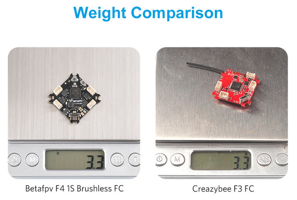 - Weight Comparison between F4 1S Brushless FC and Creazybee F3 FC