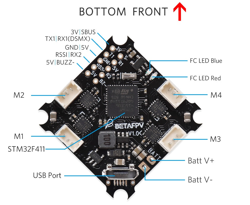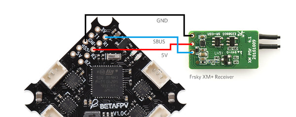 For the details about how to connect the receiver and configure in Betaflight, please check the F4 1S Brushless FC (No RX) Manual