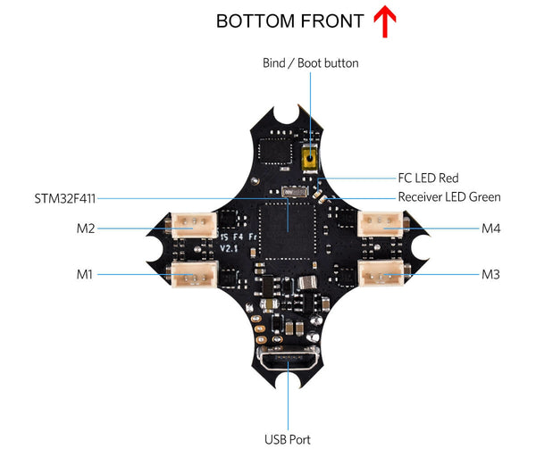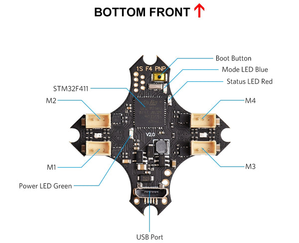 This is the lightest F4 1S brushless FC in the current market. Upgraded to V2.2, we have optimized the design of power supply for a stable flying experience. With BT2.0 connector, slim and sleek design, 2.69g in weight and better performance on function for maximum weight savings, power, and responsiveness.