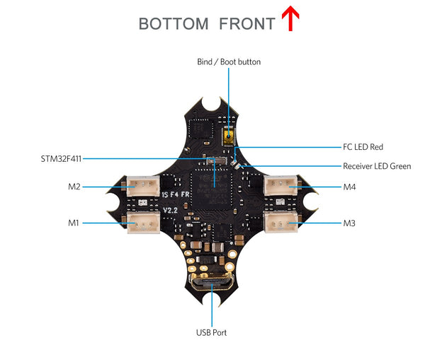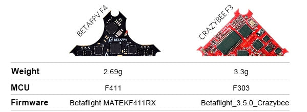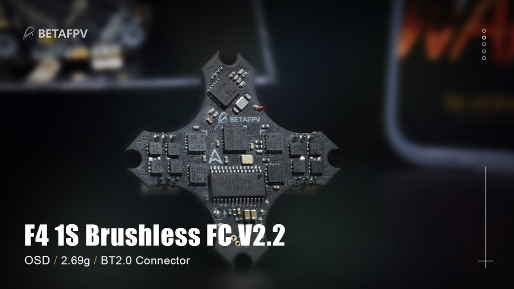 This is the lightest F4 1S brushless FC in the current market. Upgraded to V2.2, we have optimized the design of power supply for a stable flying experience. With BT2.0 connector, slim and sleek design, 2.69g in weight and better performance on function for maximum weight savings, power, and responsiveness.