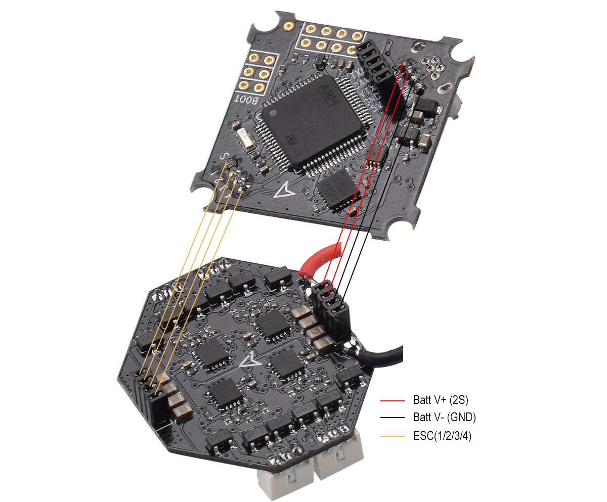 Note: Please assemble the FC and the ESC as the picture shown below, otherwise the fc will be BURNT to damage.