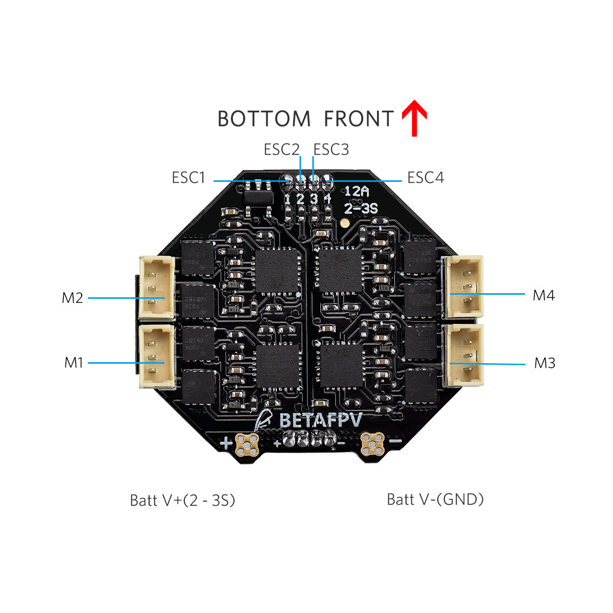 The 2S ESC board is updated from 10A to 12A. Supports 2-3S now.