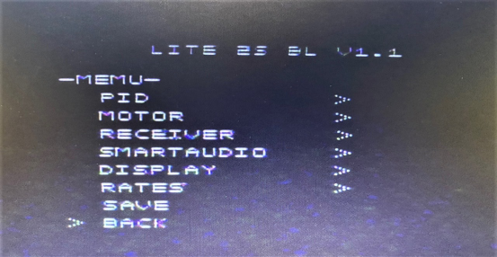 Lite 2S Brushless FC is with build-in OSD which is convenient for changing settings. It supports PID tuning, motor spinning direction changing and channel mapping of AETR in default. The power and frequency of VTX can be switched directly. The operation of OSD Menu on Lite 2S Brushless FC is the same as Betaflight.