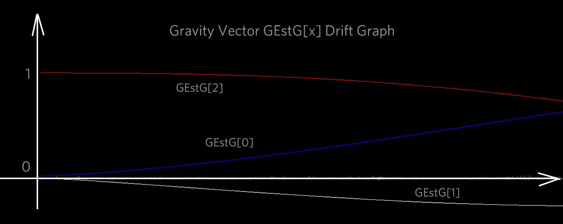 Below is the gravity vector value GEstG[x] drift graph when no correct accelerometer data participates.