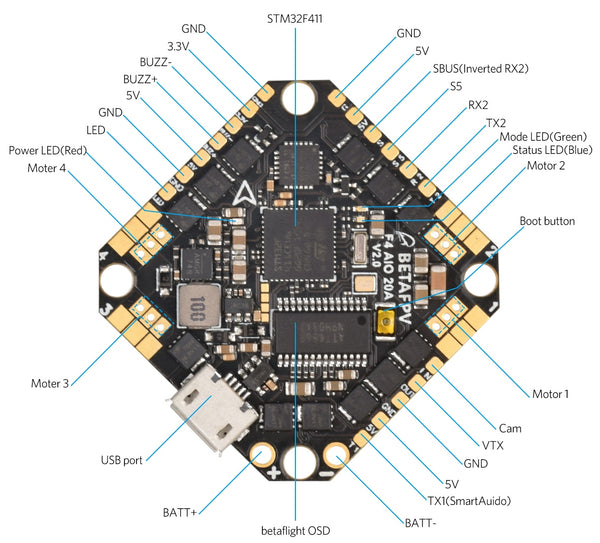 Here is a video of detailed introduction for 20A AIO FC, made by Jon E5 FPV.