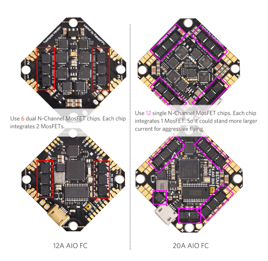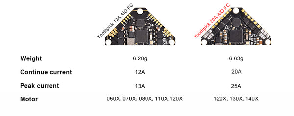 Comparison of Toothpick 12A AIO FC and Toothpick 20A AIO FC