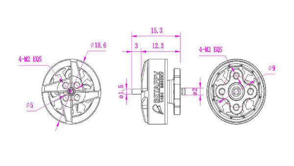 1404 Motors retains φ1.5mm shaft design instead of thread shaft for saving weight, which means it needs M2 screws to lock props, while most of 4inch props are locked with nuts in the market. These motors are best paired with 1.5mm shaft 4″ props- 4025 props.