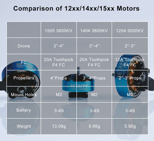 - Motor: 1204 5000KV Motors / 1404 3800KV Motors