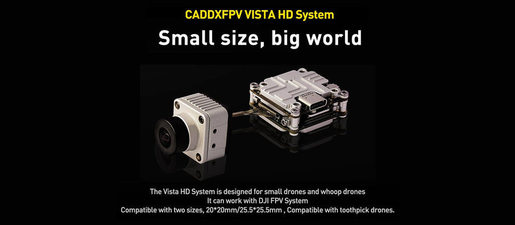 The Caddx Vista HD digital video transmitter can work with DJI FPV camera, goggles, and remote controller. The total weight (with camera and antenna) is 35g only, about 20g lighter than the DJI FPV unit. Besides, it is smaller and designed to suit for whoop drones. With this vista kit, the max range is up to 4 kilometers. BETAFPV mini canopy V3  is suitable for the Caddx Vista greatly. With injection molded process and PE material. The canopy will perfectly protect the Caddx Vista camera.