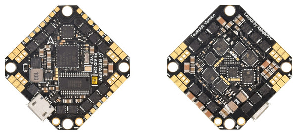 Toothpick F4 2-4S 20A AIO FC V3.0– The first quadcopter installs all-in-one 20A Toothpick FC, which can handle 20A continuous current(25A burst) and provide with massive levels of performance capability while still maintain ultralight only 6.63g. Possesses a high-performance STM32F411CEU6 processor and tuned BETAFPVF411(BEFH), which provides much more power on 4S.