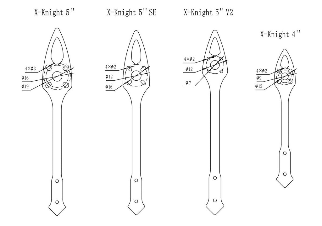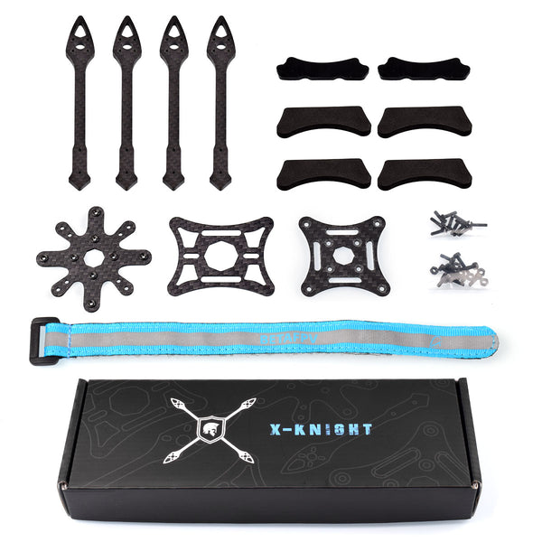 • X-Knight 5’’ V2 frame is a lightweight 5inch assembled toothpick carbon fiber frame kit, which is perfect for the X-knight 5inch quadcopter. Comes with titanium alloy screws, weights only 26.44g/pc.