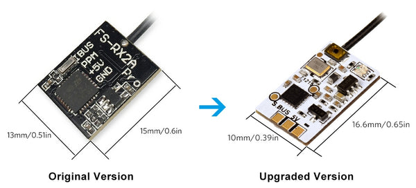 The FS-RX2A has been upgraded, which is an AFHDS 2A compatible receiver in a minuscule form factor. Weighing only 0.88g, this receiver is perfect for micro builds.