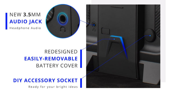 • New 3.5mm Audio jack – Rear mounted audio jack minimizes RF interference from external modules and adds a headphone audio feature.