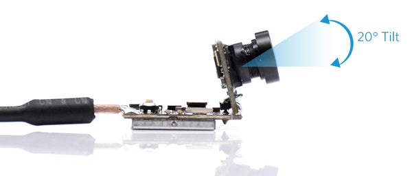 Fixed 20° tilt camera mount. At this angle the pilot can still see everything ahead in full-blown fast forward flight.